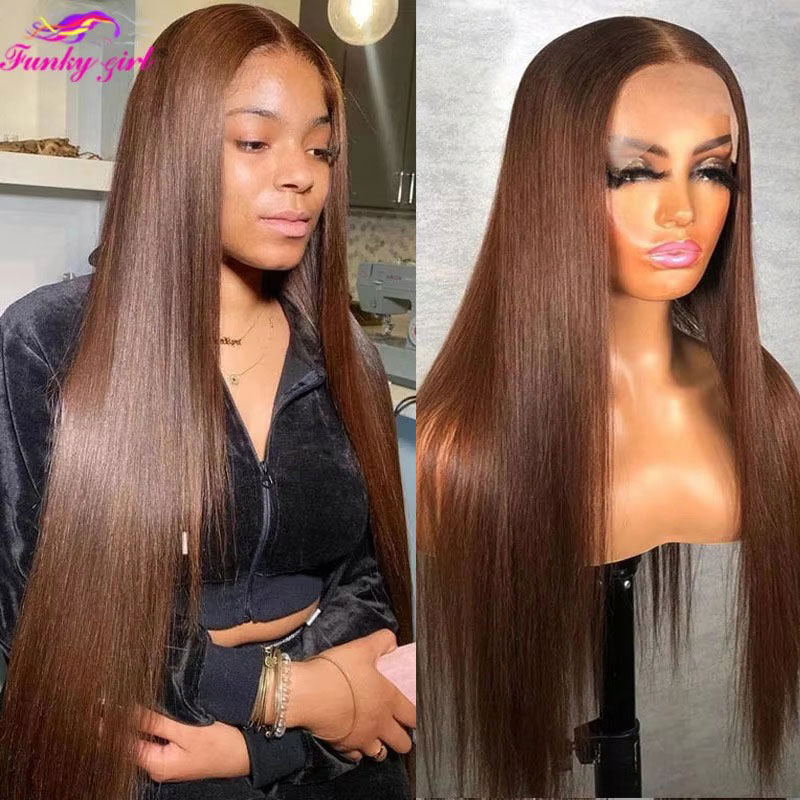 Brown Color Lace Front Human Hair Wig Brazilian Transparent Lace Wigs Bone Straight Lace Closure Wigs For Women PrePlucked Wigs