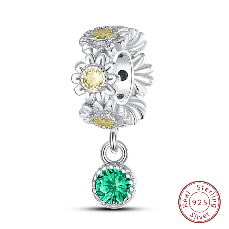 Classic 925 Silver Golden Sunflower Circular Heart Shape DIY Charms Beads 3mm Birthday Fine Jewelry Gifts Making