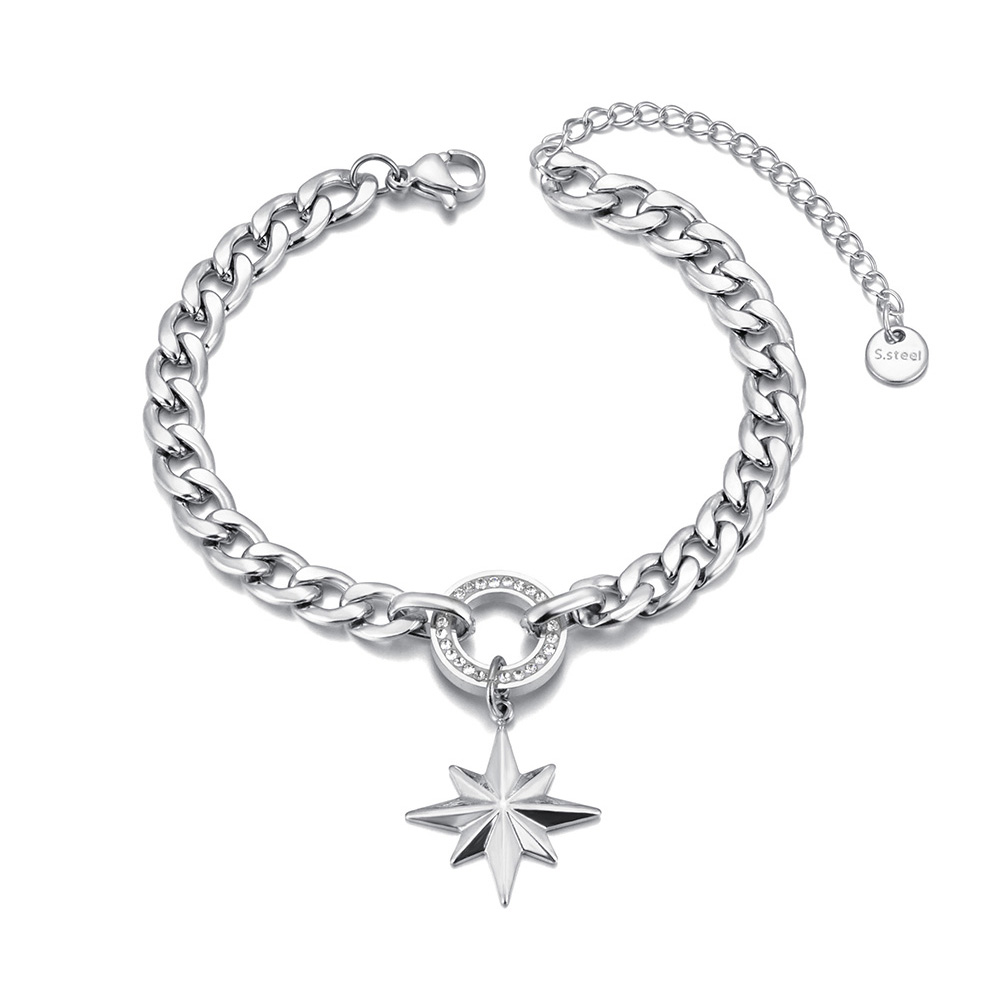 FlyMango Statement Star Pendant Bracelet Stainless Steel Gold color Jewelry Fashion Metal Texture Bracelet Accessories FB23156