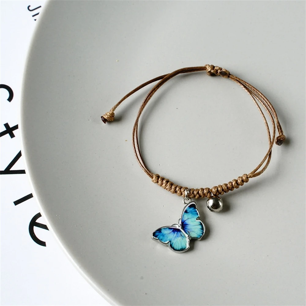 Hand Wowen Butterfly Beaded Bracelets Sweet Kids Adjustable Braided Rope Bracelet Anklet Friendship Gifts for Friend