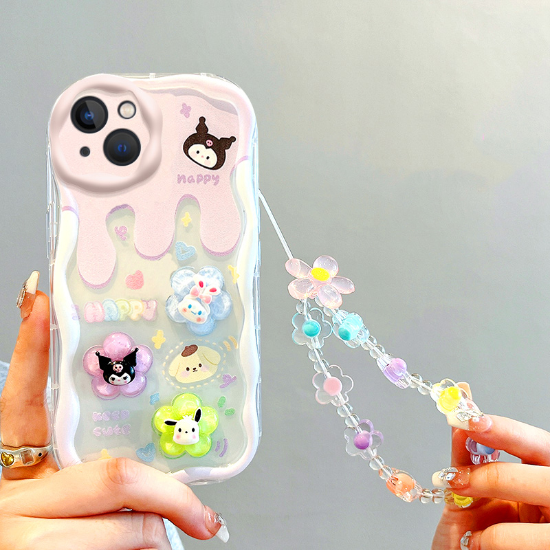 Lovely 3D Sanrio Rabbit Chain Phone Case For iPhone 14 13 12 11 Pro Max X XR XS 8 7 6 6S Plus SE 2020 Soft Silicone Back Cover