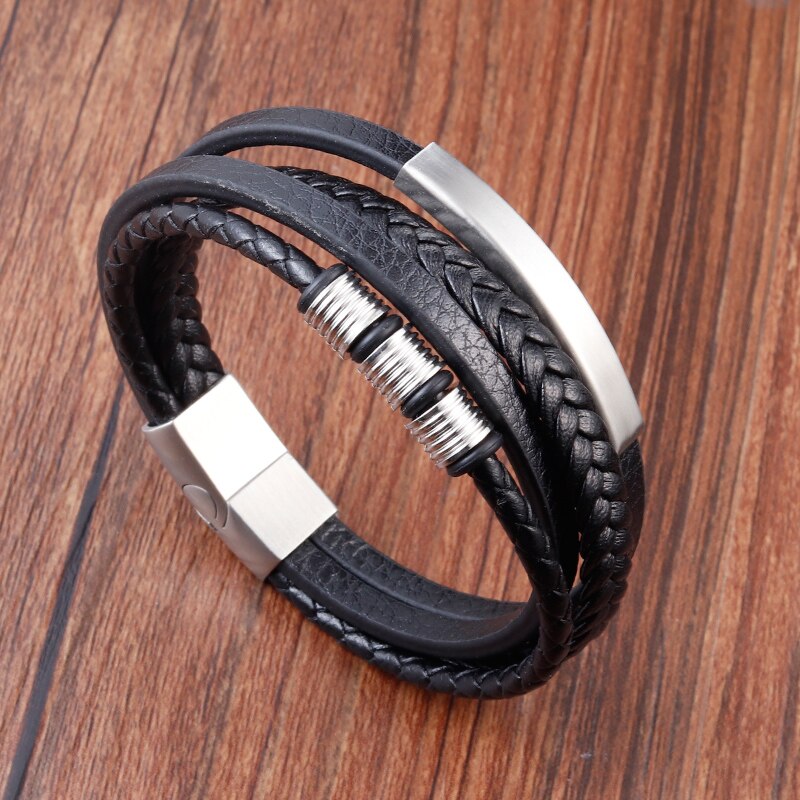 Luxury Classic Multi-layer Style Hand-woven Winding Stainless Steel Men's Leather Bracelet With Magnet Clasp For Men's Jewelry