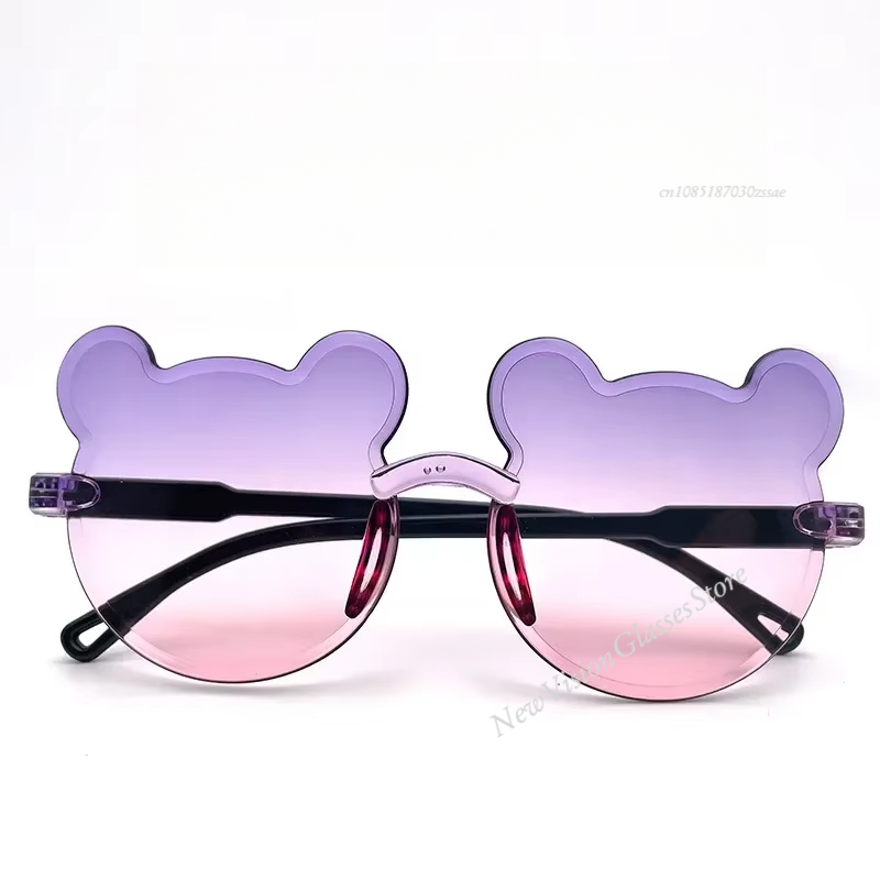 New Kids Sunglasses Cartoon Bear Sunglasses for Boy Girl Children Rimless Sunglasses UV375 Sunglasses Outdoor Anti-Glare Eyewear
